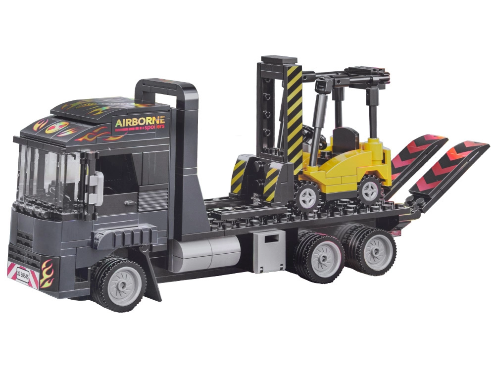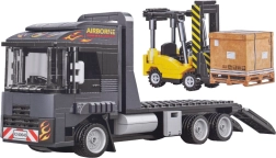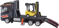 The tractor unit with a flatbed and fold-down ramps lets you load and transport the forklift—just like in real life.
