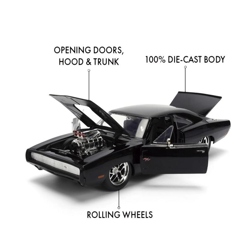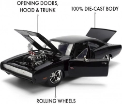 Enjoy Dominic Toretto’s legendary car in a premium collector rendition. This die-cast model of the 1970 DODGE CHARGER delivers authentic proportions, bold lines, and the movie look with a supercharger, chrome wheels, and a low sporty stance. Ideal for display cases or your desk.