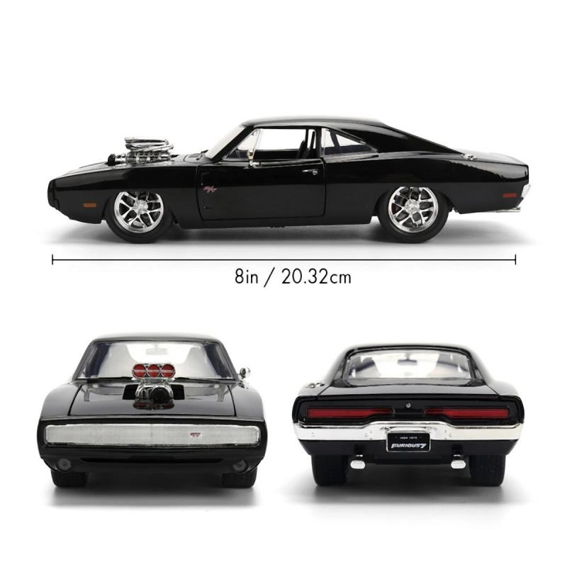 The iconic collector’s model of the 1970 DODGE CHARGER from the Fast & Furious movie series in 1:24 scale will delight muscle car and film fans alike. It features die-cast metal construction, opening doors, hood, and trunk, and realistic details including a prominent supercharger on the hood. The model length is approximately 21 cm.