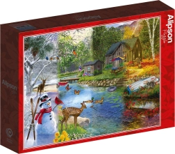 Discover the beauty of the four seasons in one image. This puzzle offers precisely cut pieces, a pleasant surface, and a motif that will entertain you from the first to the last piece. Thanks to its balanced difficulty, it is suitable for adults and more advanced teenagers.
