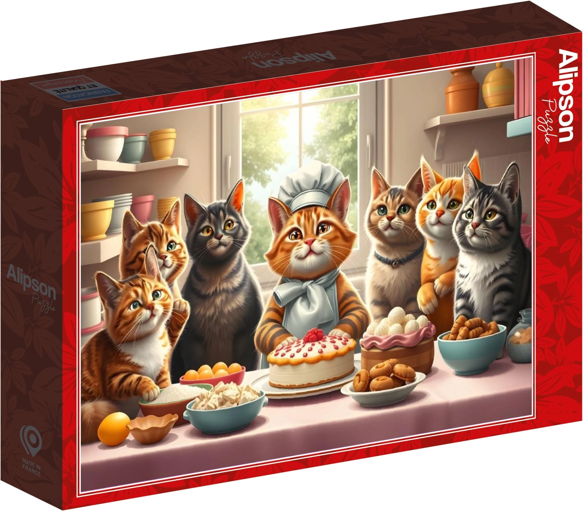 The charming cat bakers motif brings hours of fun and relaxation. This 1000-piece puzzle is perfect for animal lovers, family puzzling, or as wall decor once framed. Thanks to the standard finished format of 69 × 47.8 cm, you can easily find a suitable frame.