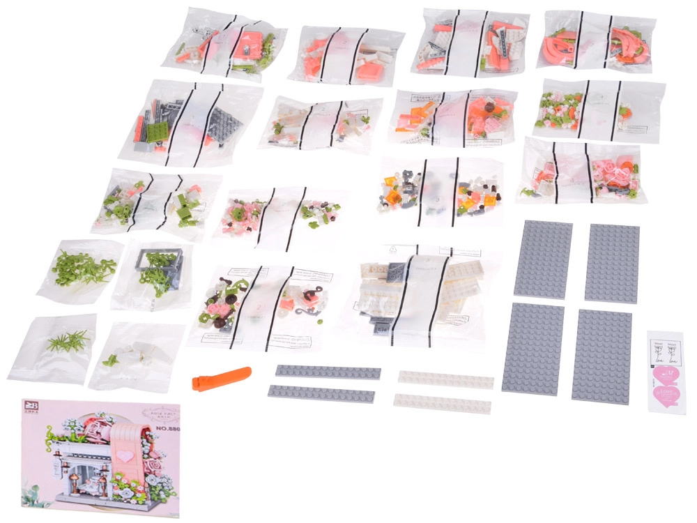 Discover a charming building set inspired by a bridal salon, featuring pastel colors, a detailed display window, and abundant floral decorations. Inside, you’ll find a “glazed” front showcasing a wedding dress, delicate pink accents, and plenty of floral details. The set includes 1047 pieces, a clear pictorial guide, and is perfect both for play and as a room decoration.