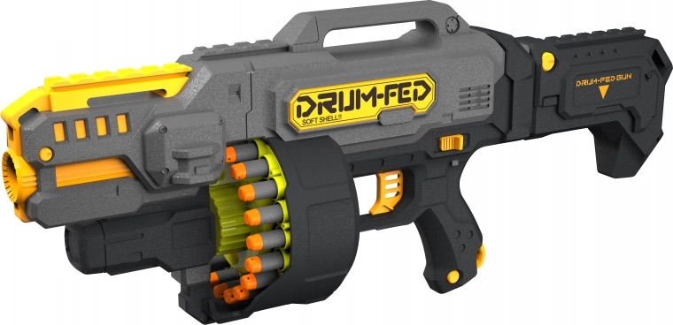 Experience action-packed play with this drum-fed foam-dart machine gun that combines safe fun with easy operation. The set includes both standard and suction-cup darts for various play scenarios—from target practice to dynamic battles.