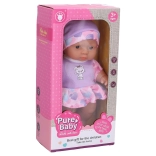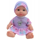 A cute baby doll in a soft purple outfit will delight every child. Thanks to its compact 22 cm size, it fits perfectly into little hands, for travel, and for the stroller. Soft feel and a sweet look support children’s imagination and nurturing play.