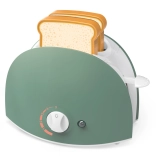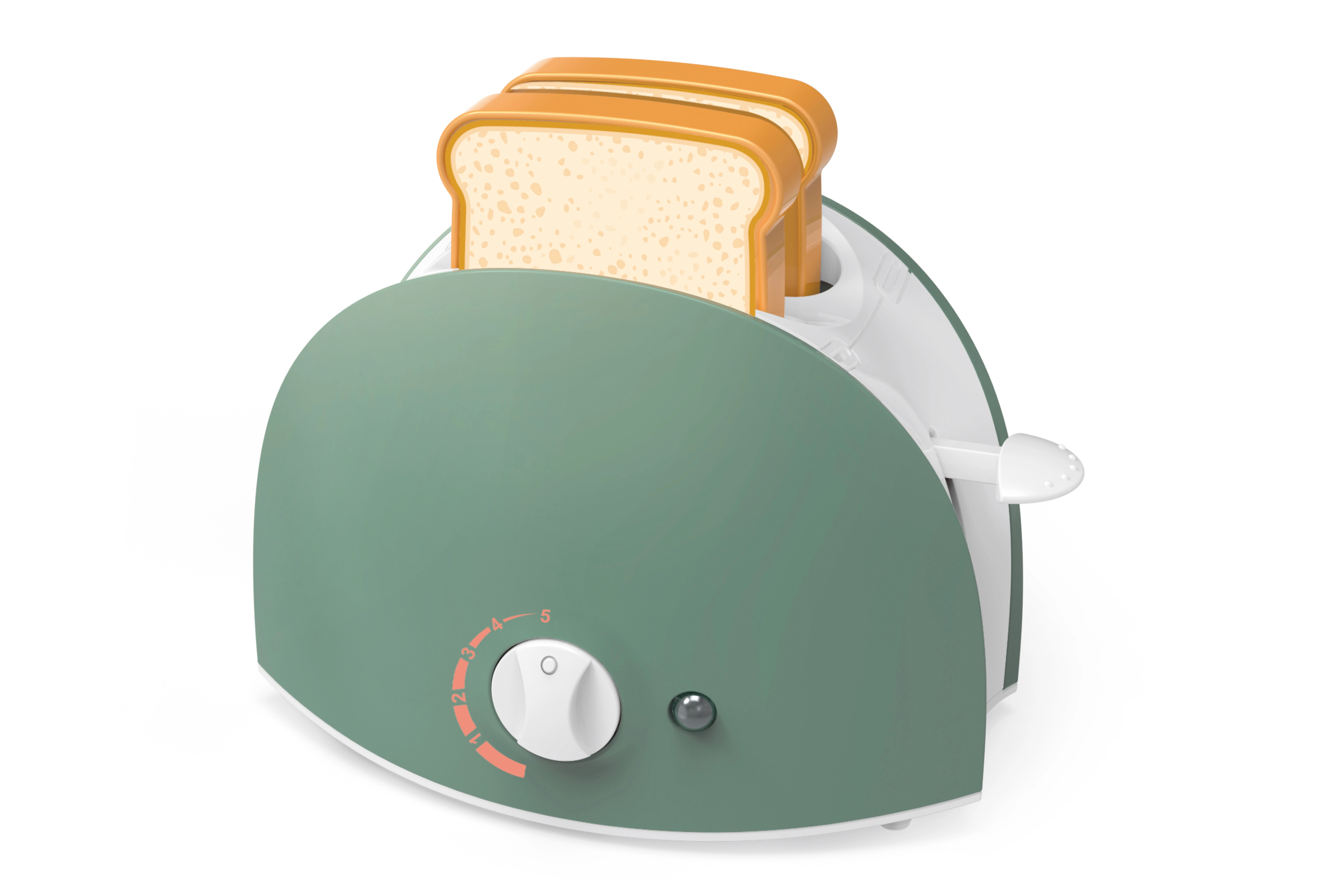 The toaster is safe for little hands, and with its compact size of 10 × 5 × 13 cm, it fits any kids’ kitchen. It is powered by 2× AA batteries (not included), so just insert the batteries and the fun can begin.