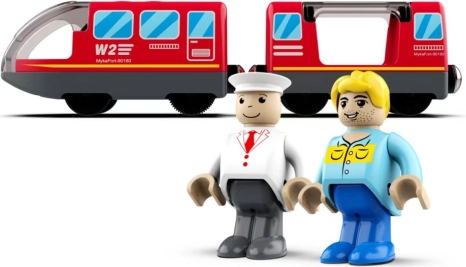 The red set with a locomotive and a car will delight young train fans thanks to easy operation and smooth battery-powered motion. Magnetic coupling ensures quick assembly and uncoupling, and the two included figures encourage imaginative play.