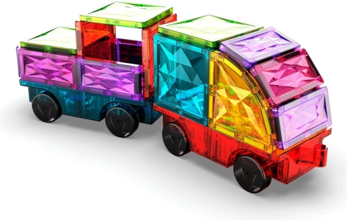 Discover the fun Geomag Magnetic Tiles Cars set, where kids can easily create 2D shapes and 3D vehicles. Pieces with magnets on all sides hold firmly, support creativity, imagination, and fine motor skills, and thanks to the wheel chassis, finished models really roll.