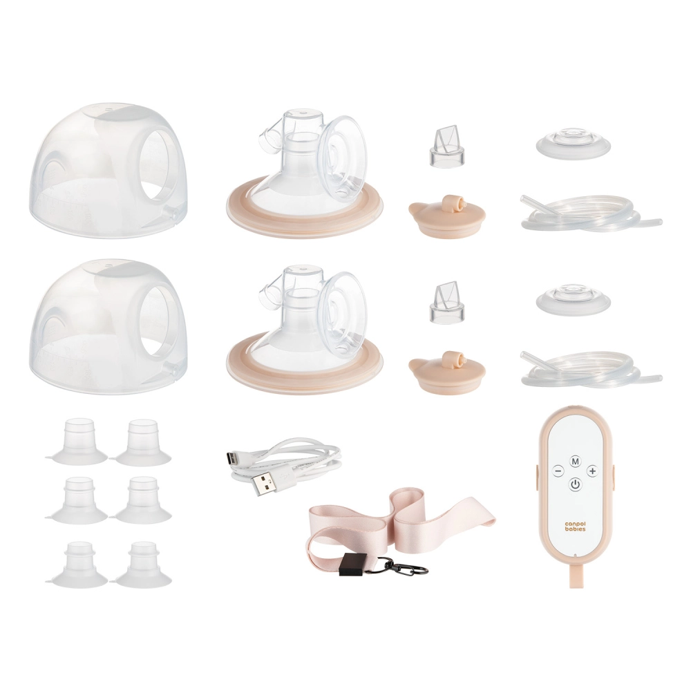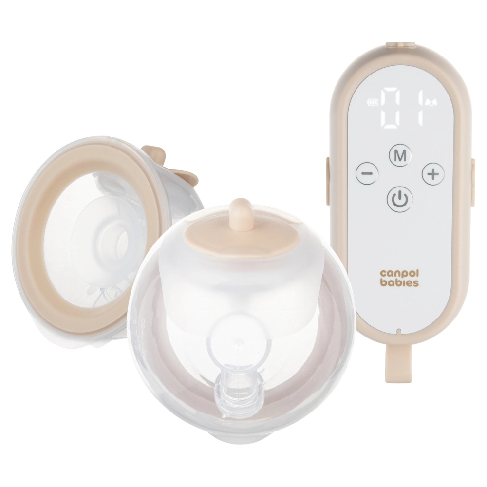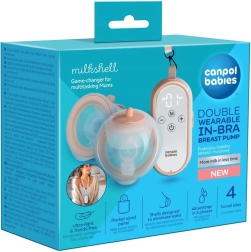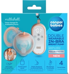 Hands-free pumping anytime, anywhere. The Canpol babies MilkShell double breast pump offers effective suction up to 30 kPa, an exceptionally quiet operation up to 50 dB, and wearable in-bra collection cups for maximum comfort. Thanks to PerfectFIT technology, four modes, and 48 suction levels, you can easily tailor pumping to your needs.
