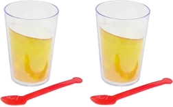 - Box contents: blender, ice mold, apple, orange, grapes, 2 cups with spoons