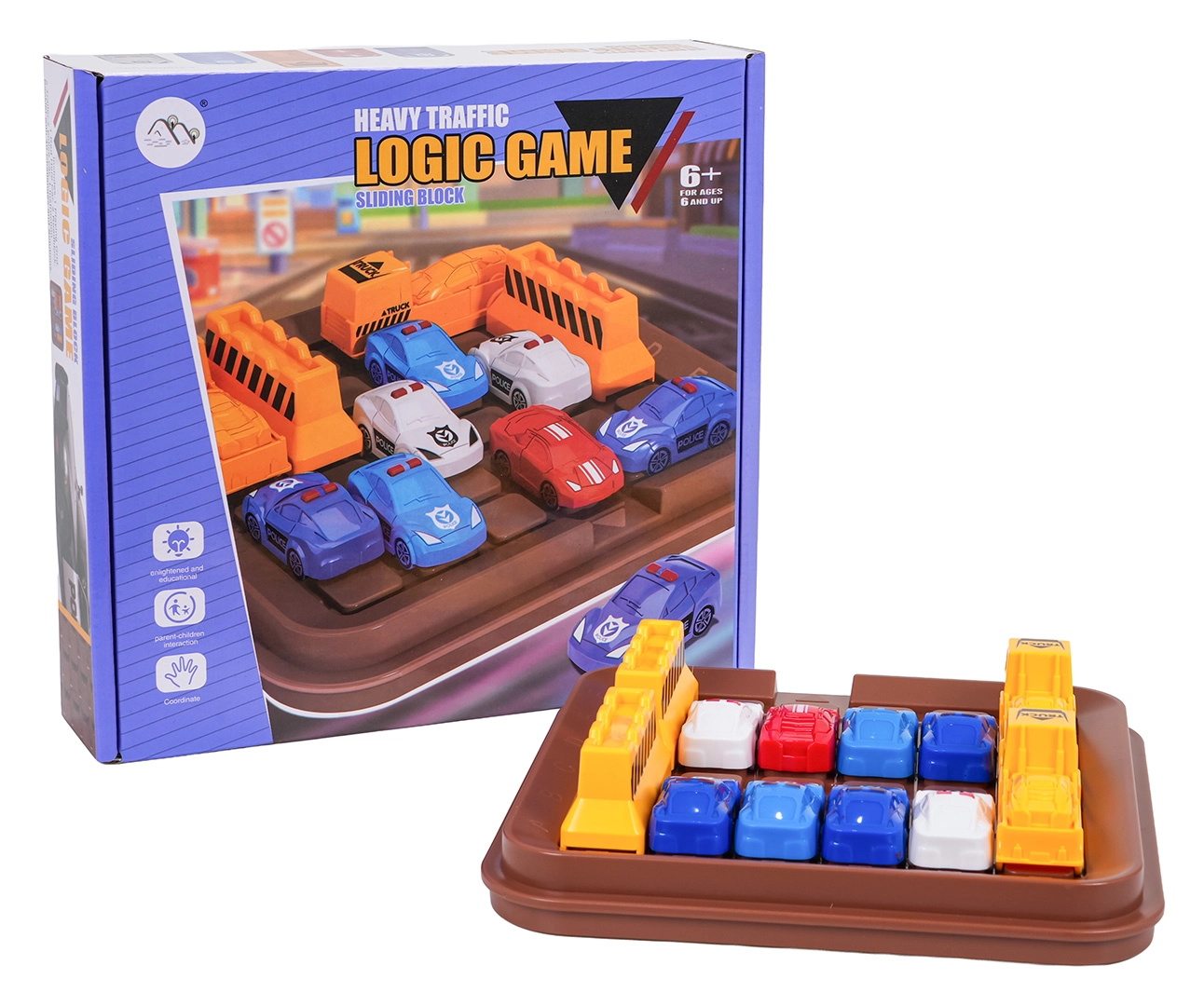 Traffic is a popular logic puzzle where kids solve a traffic riddle step by step. Slide the vehicles on the board only forward and backward and plan the best route to get the red car out of the parking trap. Great for developing logical thinking, strategic planning, and patience.