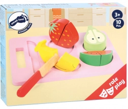 This colorful wooden set is ideal for a play kitchen and for practicing practical skills. Children practice grip, precision, and learn the basics of food preparation through play. Each piece of fruit is divided into halves, and the hook-and-loop connection allows a realistic “cut” with a satisfying sound.