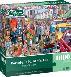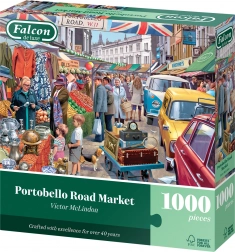 Discover the unique humor and detailed illustrations of Jan van Haasteren in this lively Portobello Market scene. Every glance reveals new jokes, characters, and the artist’s typical “signatures” — from the shark fin to zany crowd moments. This FALCON / JUMBO puzzle stands out for its precise craftsmanship and pleasant material for comfortable assembling.