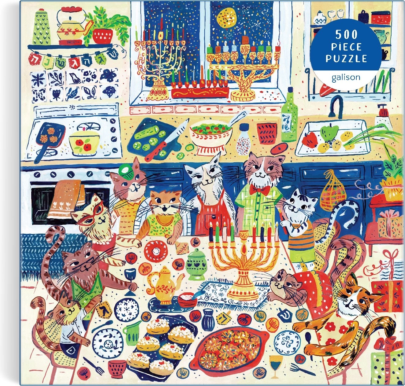 The Happy Hanukcats square puzzle features a playful illustration full of cats and festive Hanukkah decorations. With its 51 × 51 cm format and 500 precisely cut pieces, it’s a great choice for medium-difficulty puzzling that will delight both kids and adults.