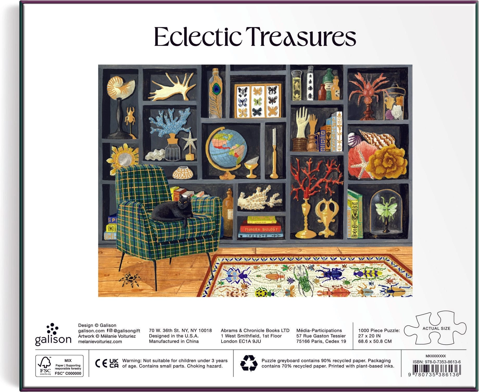 Discover the joy of puzzling with elegant metallic puzzles that shimmer beautifully and change reflections with every movement thanks to their special finish. This 1000-piece puzzle features a luxurious metallic effect, quality craftsmanship, and an impressive Eclectic Treasures motif measuring approximately 69 × 51 cm.