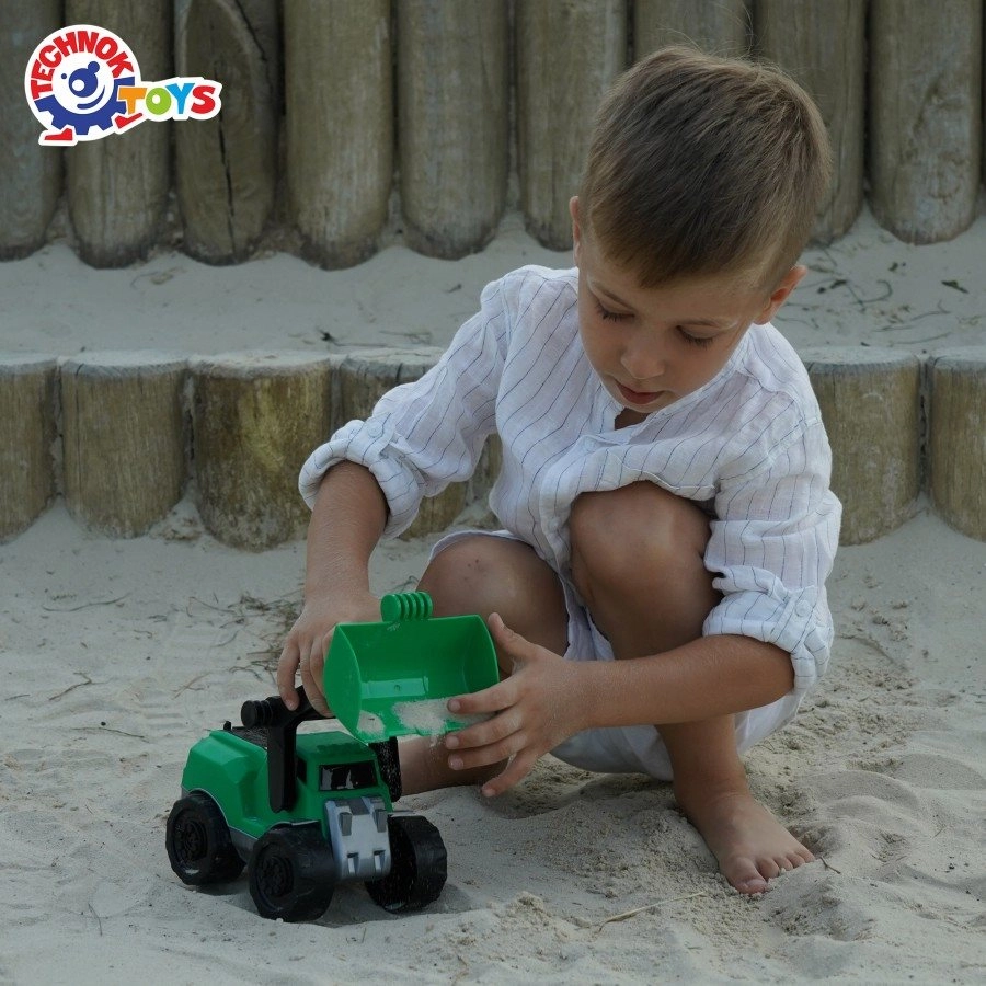 Build your own construction site with the durable Technok loader. Thanks to the freewheeling wheels and functional front bucket, kids enjoy realistic play whether at the sandbox, in the garden, or in the playroom. The compact 28 cm length ensures a comfortable grip and easy handling.