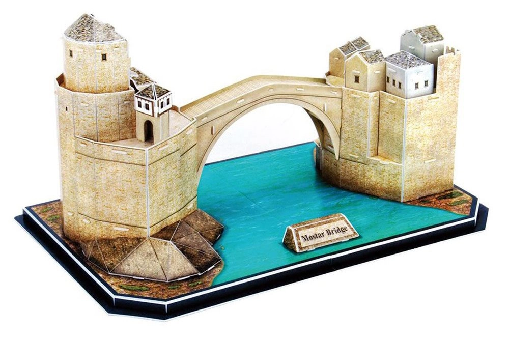 Assemble the iconic Stari Most in Mostar as a design 3D model made from high-quality foam and laminated paper. No glue or scissors needed, easy punch-out pieces, and a stable structure make this model a great project and a stylish interior accessory. 64 pieces, realistic details, and a build time of 60–100 minutes will delight beginners and experienced builders alike.