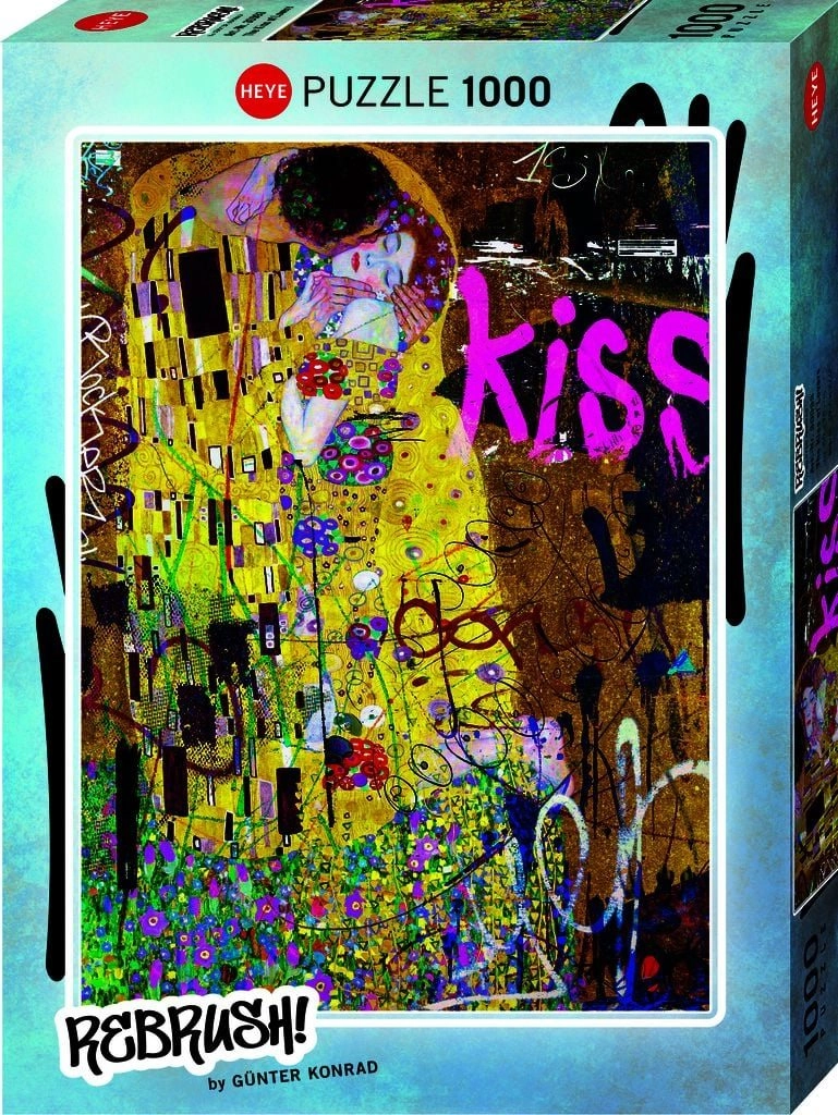 Enjoy relaxing while assembling a stylish image with the “The Kiss” motif from the Rebrush! series by HEYE. High‑quality cardboard, precise die-cutting, and 1000 pieces for a fun challenge. Ideal for art lovers and avid puzzlers alike.