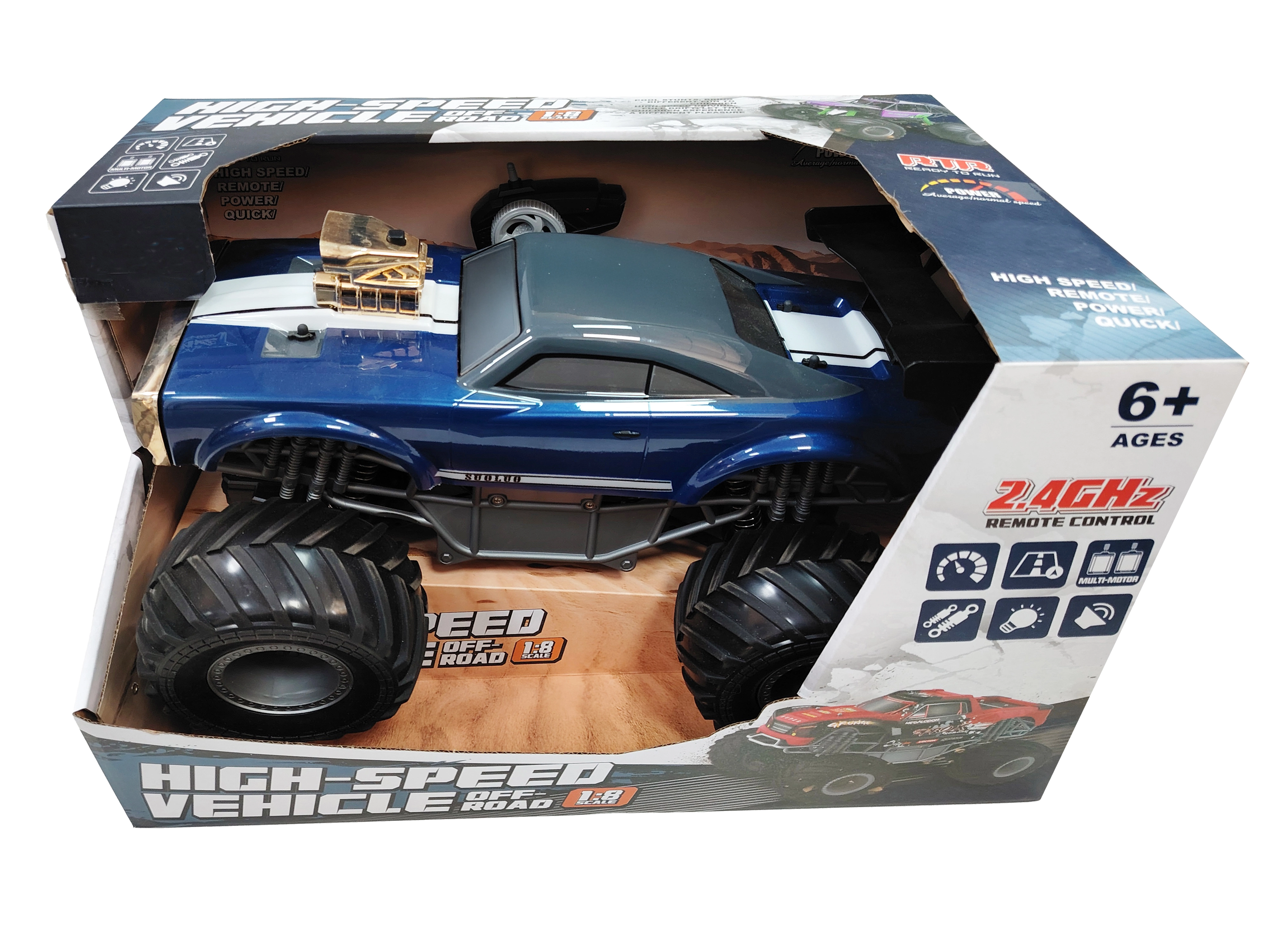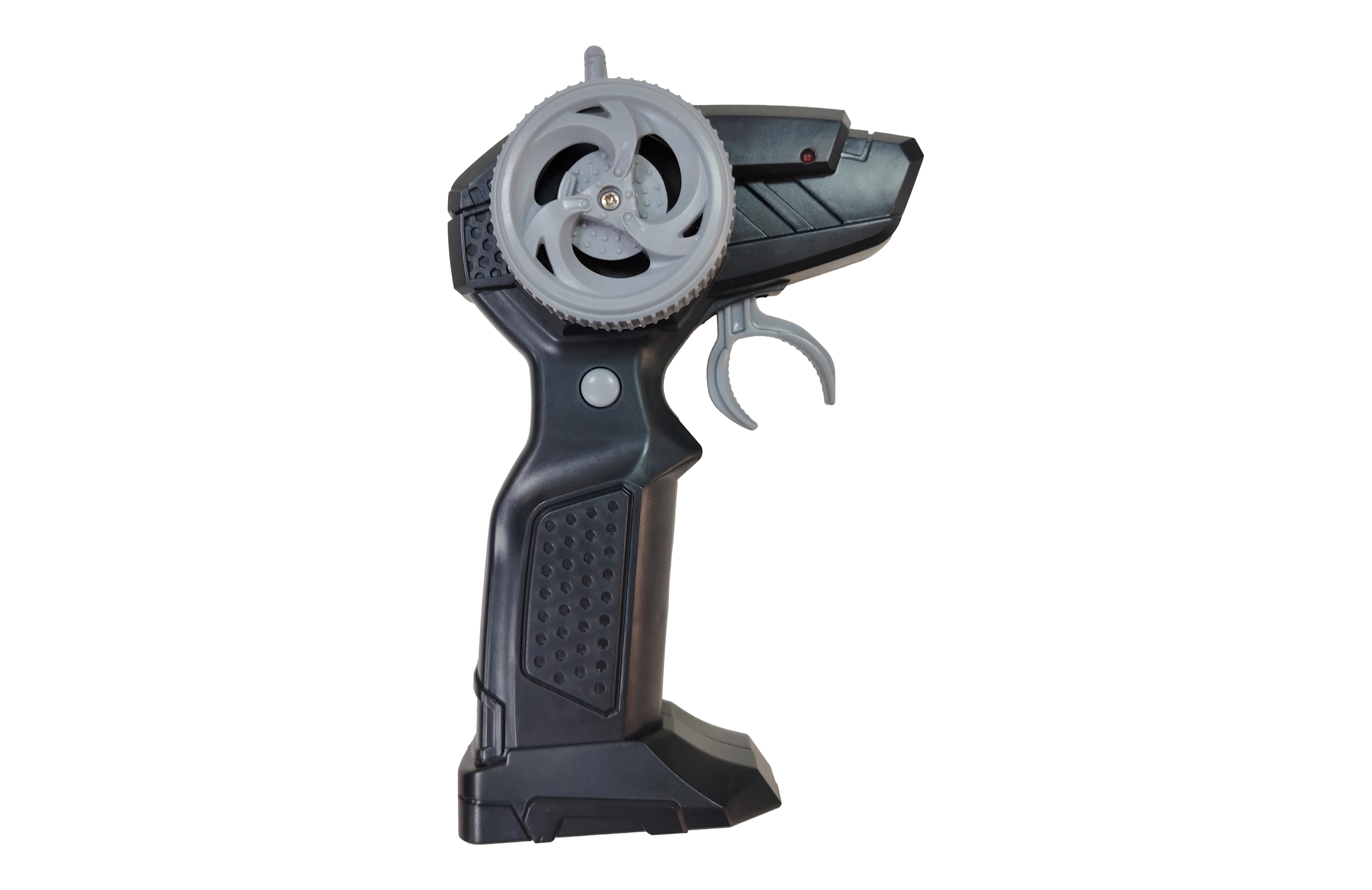 Discover the fun with a large 43.5 cm RC car featuring stable 2.4 GHz control, a pistol-grip controller for comfortable steering, and light effects for an even greater experience. Includes a 7.4 V 800 mAh battery pack and a USB charging cable; only 2× AA batteries for the controller are needed.
