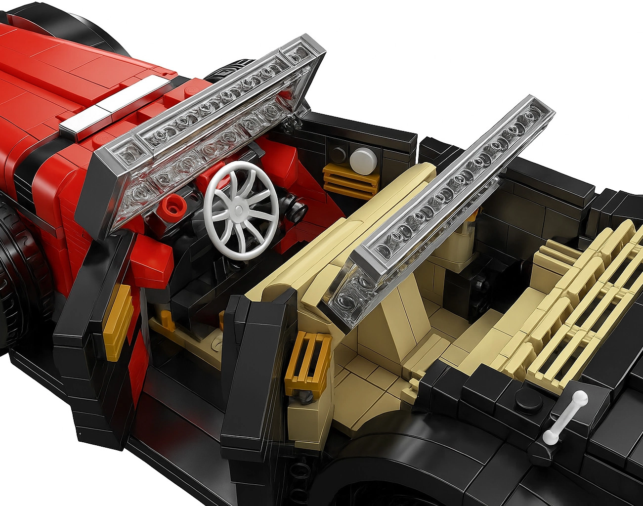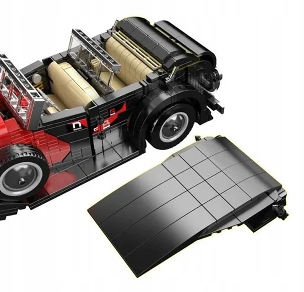 This detailed model of a historic car in an elegant black-and-red combo will delight fans of classic cars and building sets alike. The robust build, faithful silhouette, and well-thought-out interior and exterior elements ensure a satisfying build and a striking display piece.