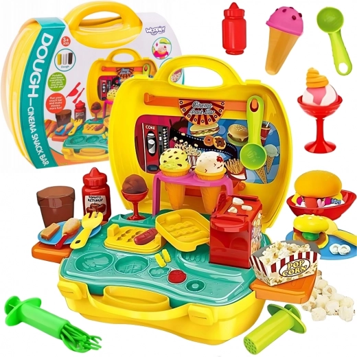 The WOOPIE brand kids’ set turns playtime into a snack bar adventure. In a compact suitcase you’ll find a rich set of accessories, soft, non-toxic modeling clay, and molds for popcorn, fries, hot dogs, hamburgers, and ice cream. Thanks to easy use and safe materials, it develops creativity, fine motor skills, and imagination for children ages 3 and up.