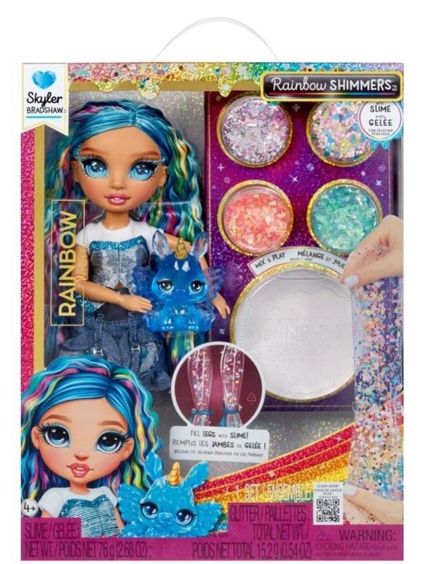 The RAINBOW HIGH Skyler doll brings a whole new way to play – blending fashion, slime, and glitter. Create your own sparkling mix, add it to the doll’s clear legs, and watch the transformation. Filling is fast and simple: remove the back of the legs, insert the slime, snap closed, and start playing right away. Best of all, you can repeat the process again and again.