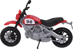 The flatbed trailer is equipped with a fold-down rear gate for quick loading and unloading and can be easily hitched and unhitched from the car. The set also includes a motorcycle that a child can safely place on the trailer. The set supports imagination, fine motor skills, and themed play focused on transport and rescue missions.