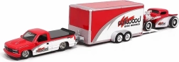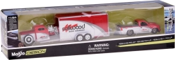 The CHEVROLET 454 SS has a removable tow hook; the trailer attaches and detaches easily. The smaller 1936 pick-up fits the trailer perfectly – ideal for transport scenes.