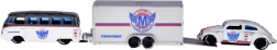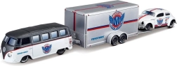 The Volkswagen Van Samba comes with a tow hook for attaching the trailer; the hook can be removed as needed, and the trailer can be detached without unscrewing. The complete set is perfect for fans of classic cars, 1:64 collectors, and kids who love creative play.