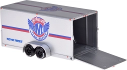 The VAN SAMBA tows a closed trailer; the trailer can be detached and the tow hook removed. The BEETLE fits securely on the ramp for easy loading.