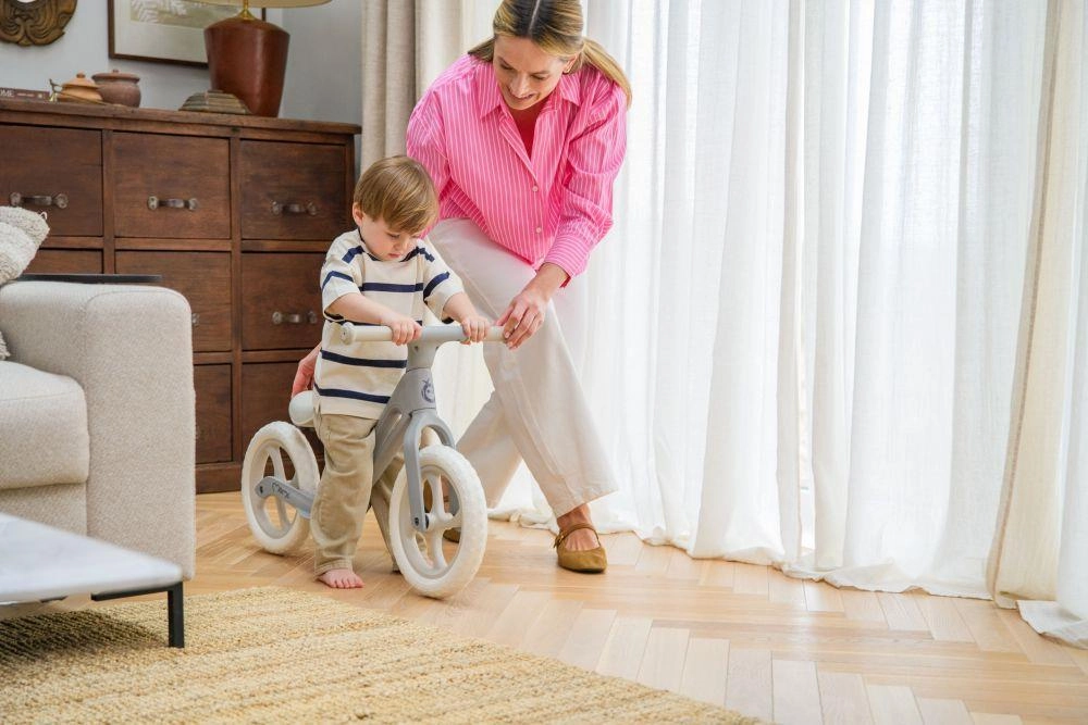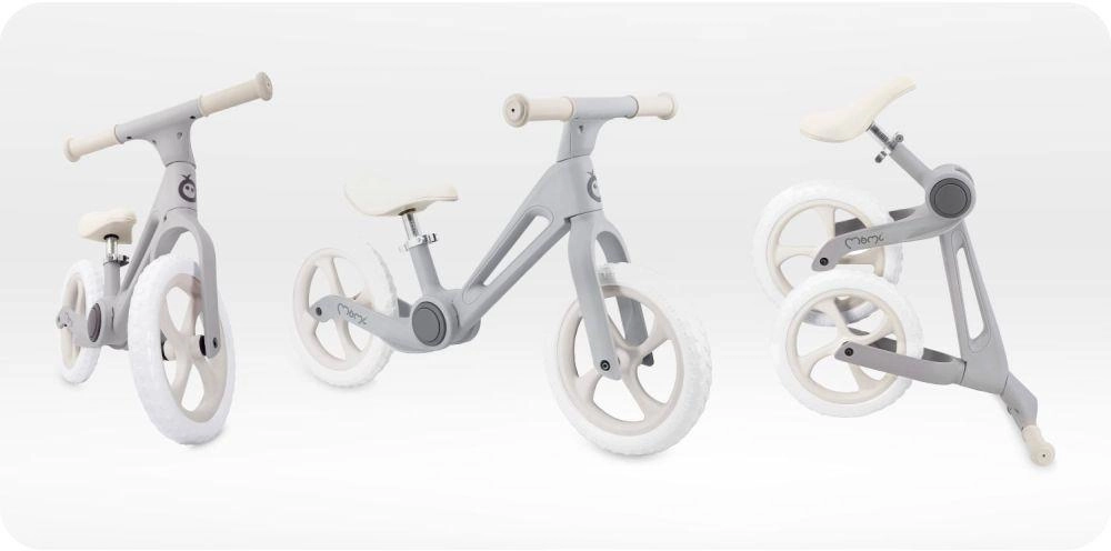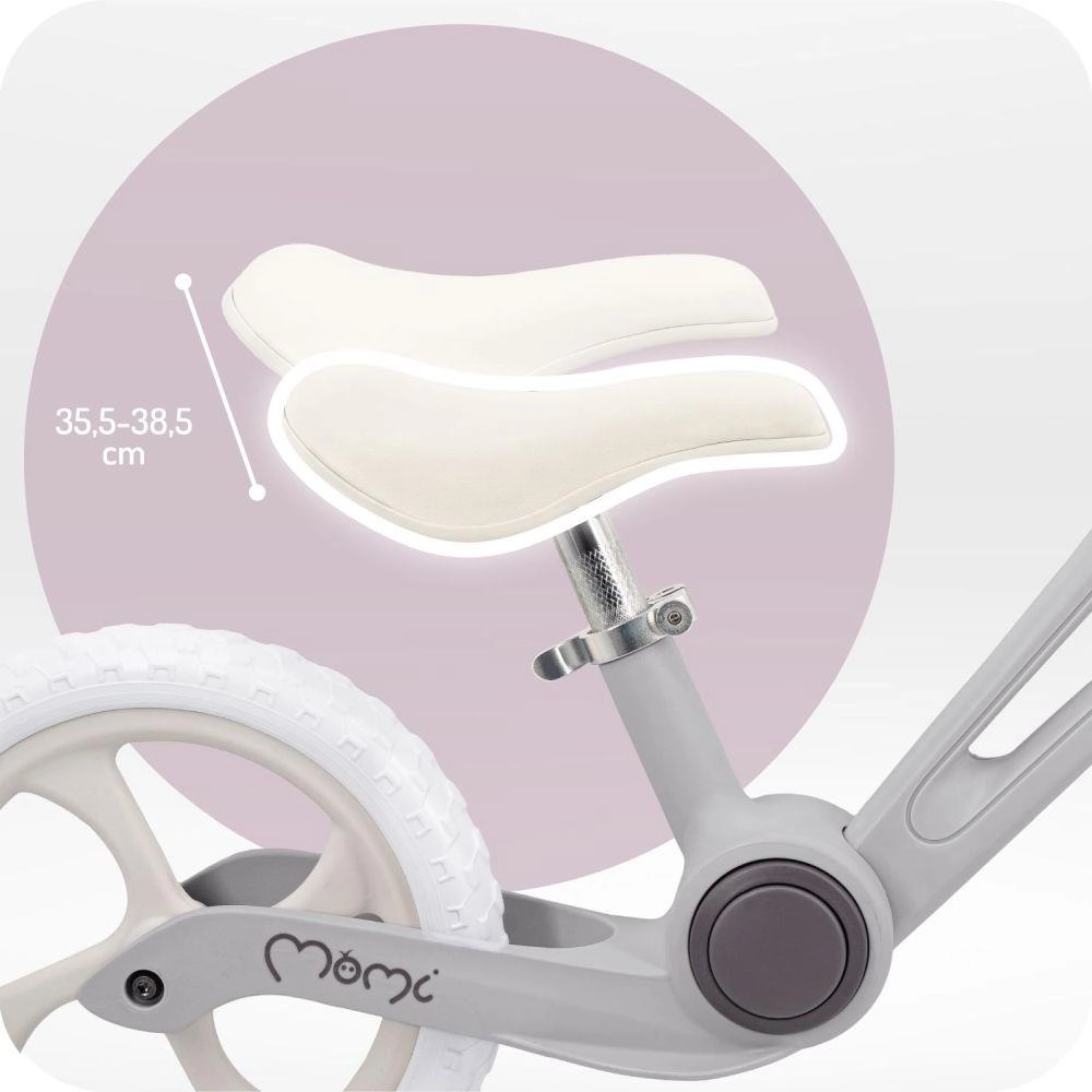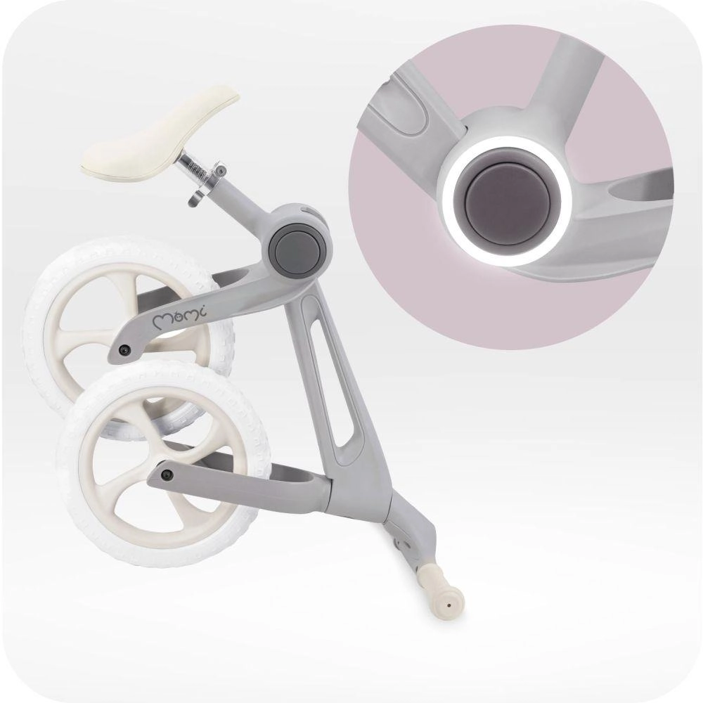 The lightweight and practical MoMi Noru balance bike with one-button folding is ideal for little riders from 2 years old. It offers a low weight, tool-free adjustable saddle height, and 12" tubeless EVA wheels for a comfortable and safe ride. Thanks to the nylon frame and non-slip grips, kids learn balance confidently both indoors and outdoors.