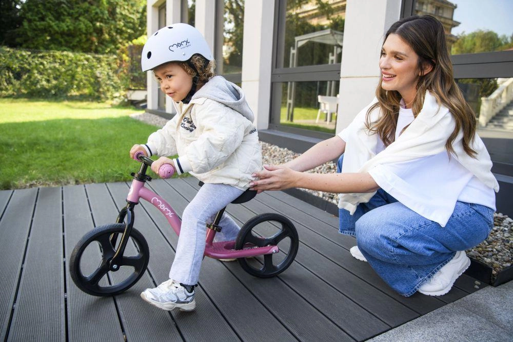 MoMi Isoka is a modern balance bike designed for first rides and safe exploration on two wheels. Thanks to the dynamo LED lights in the wheels, the child is more visible and no batteries are needed. TPR wheels absorb bumps and increase comfort, while the steel frame ensures stability with low weight.