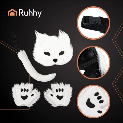 Express your personality with the versatile RUHHY 4‑in‑1 costume set. The set includes an elastic strap mask, an adjustable tail with a shapeable wire, and cute paw gloves. Thanks to the soft, pleasant faux fur, one-size fit, and lightweight design, it’s ideal for cosplay, conventions, photoshoots, parties, and Halloween. Instantly transform into a mysterious cat, a charming fox, or a wild wolf — just put it on and shine.