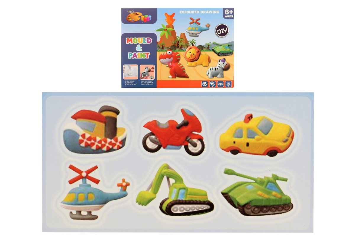 Discover a fun creative set for little makers, where kids can craft and paint their own plaster vehicles. The box includes everything you need—from a mold with 6 designs to paints and brushes. A great choice to develop creativity, fine motor skills, and patience.