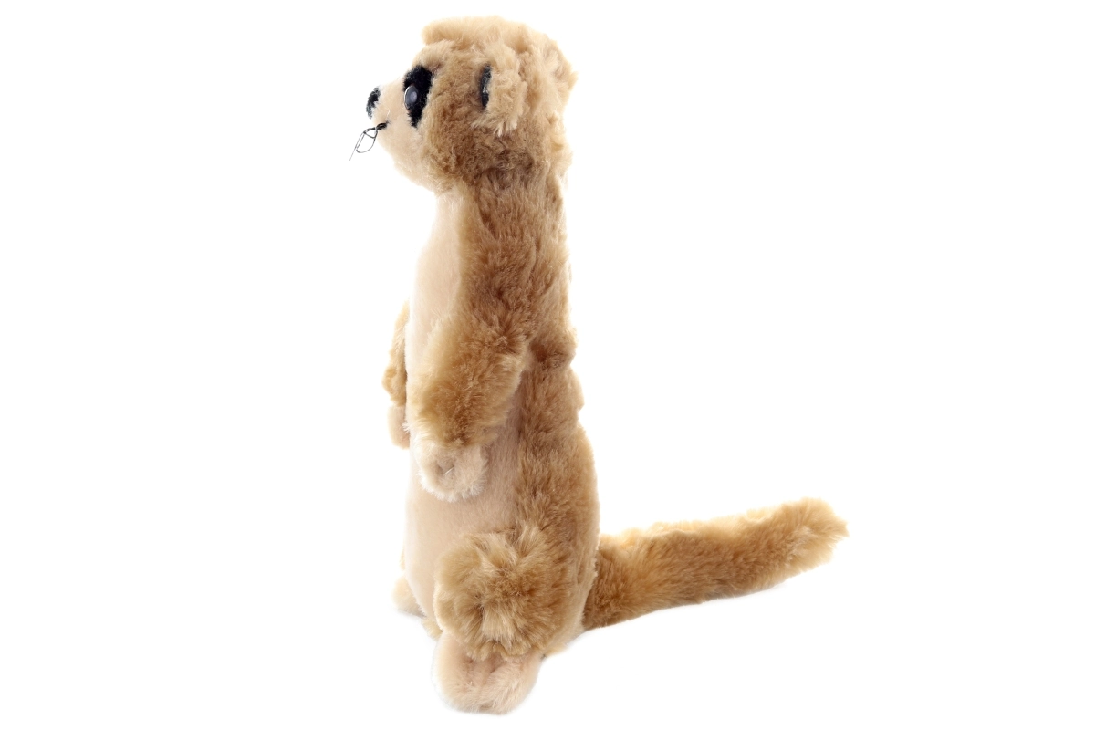 Embroidered and trimmed features, signature dark eye patches, and fine whiskers give the meerkat an authentic look.