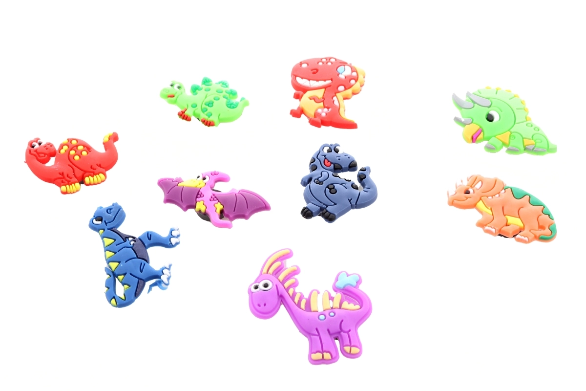 Discover fun and colorful dinosaur-themed magnets that will delight both kids and adults. The magnets, measuring about 3.5 cm, are made of soft plastic and are perfect for decorative purposes on fridges, magnetic boards, or in children’s rooms.