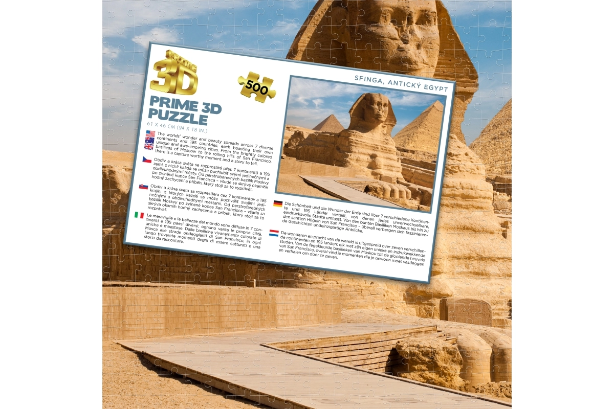 Step into the realm of pharaohs and assemble the legendary Sphinx right at home. This quality 3D puzzle combines fun, learning, and fine motor skill development. Thanks to 500 sturdy pieces, it’s ideal for both kids and adults who love challenges and historical themes.