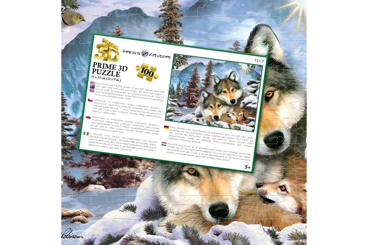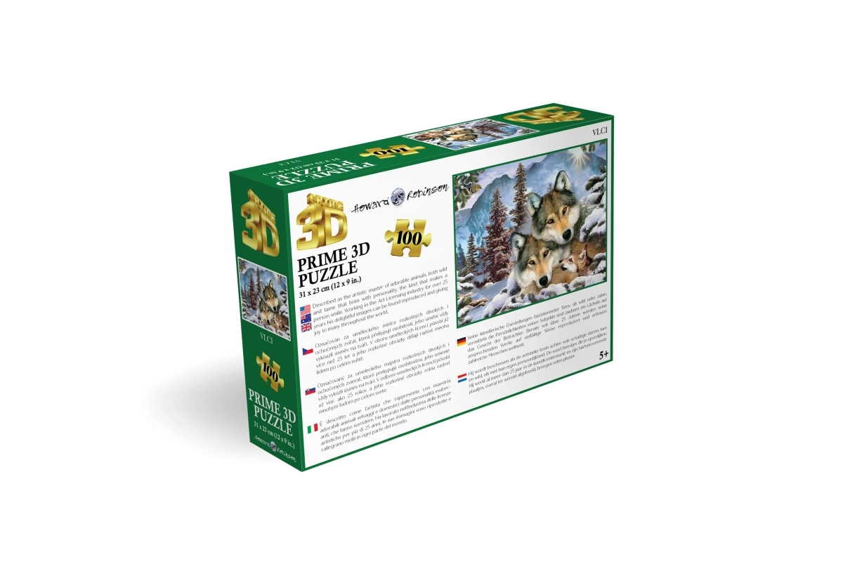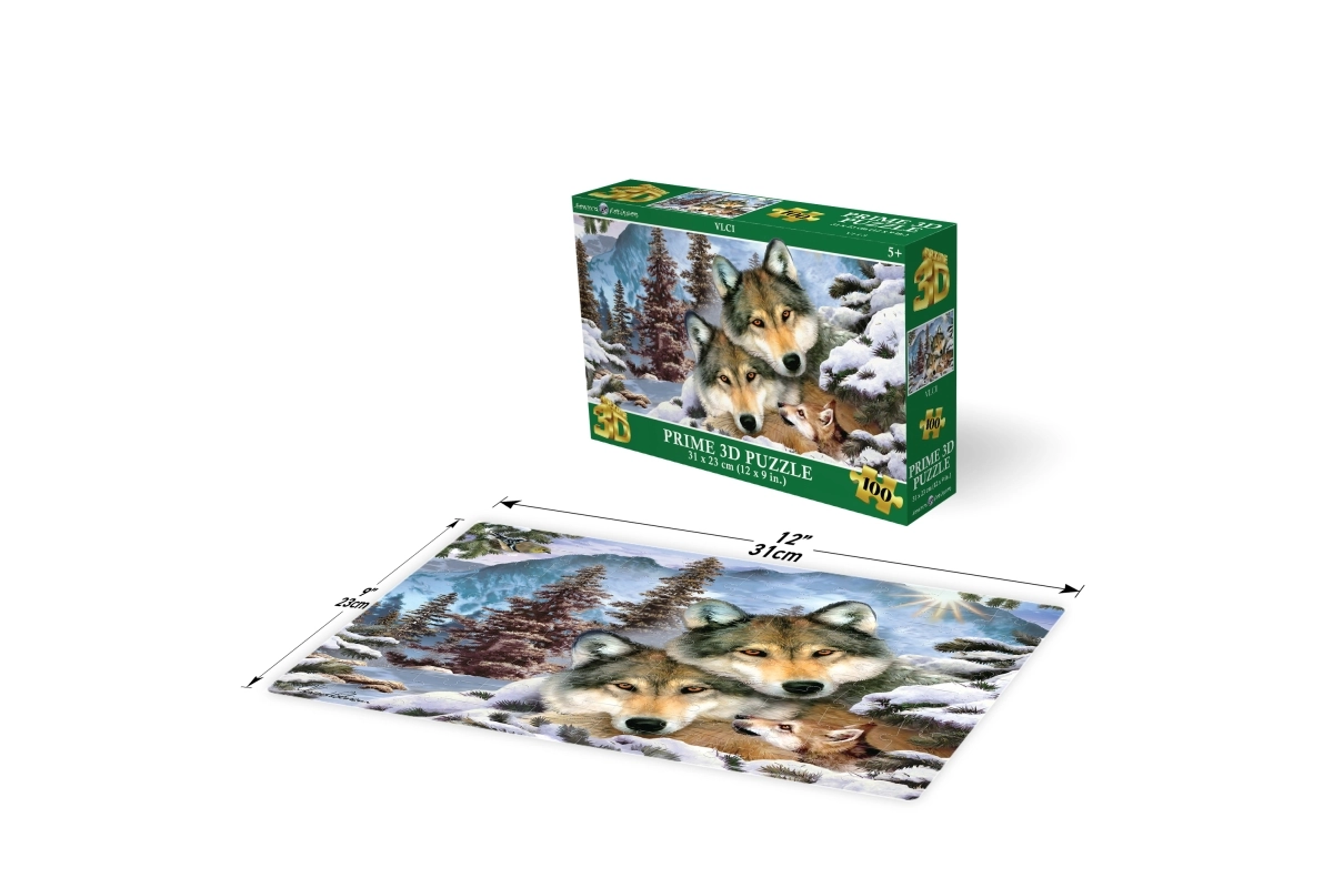 Discover fun for the whole family with this 3D puzzle featuring wolves. It contains 100 pieces and creates a lenticular 3D image measuring 31 × 23 cm when completed. Ideal as a gift for children ages 5 and up and nature lovers alike.