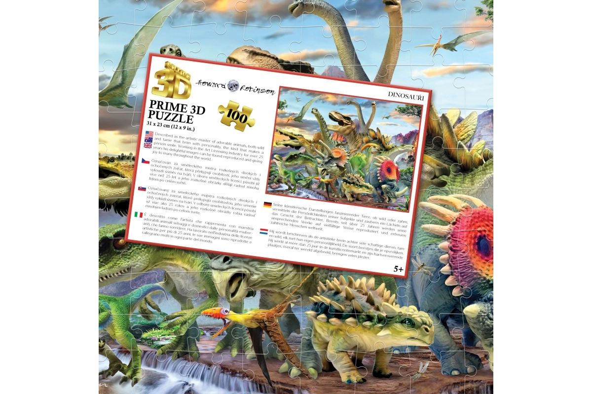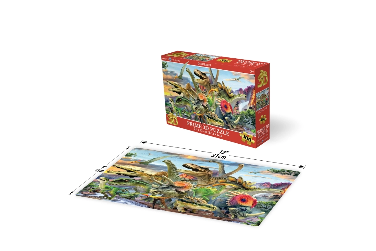 Discover fun and learning with this colorful 3D puzzle featuring dinosaurs. Ideal for children aged 5+, helping them practice fine motor skills, logic, and patience. The package includes 100 pieces, the completed picture measures 31 × 23 cm, and the handy box size is 23 × 15 × 5 cm.