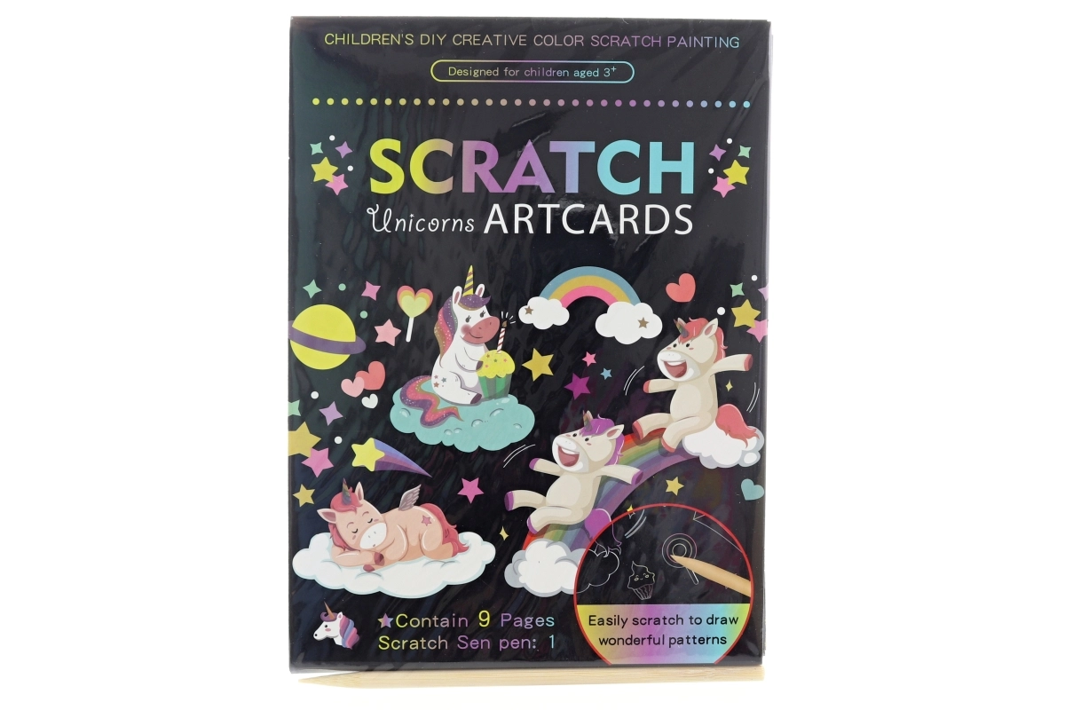 This creative set brings fun scratch art with a popular unicorn theme. Using the included wooden tool, gently reveal the colorful layers to create striking pictures perfect for display or gifting.