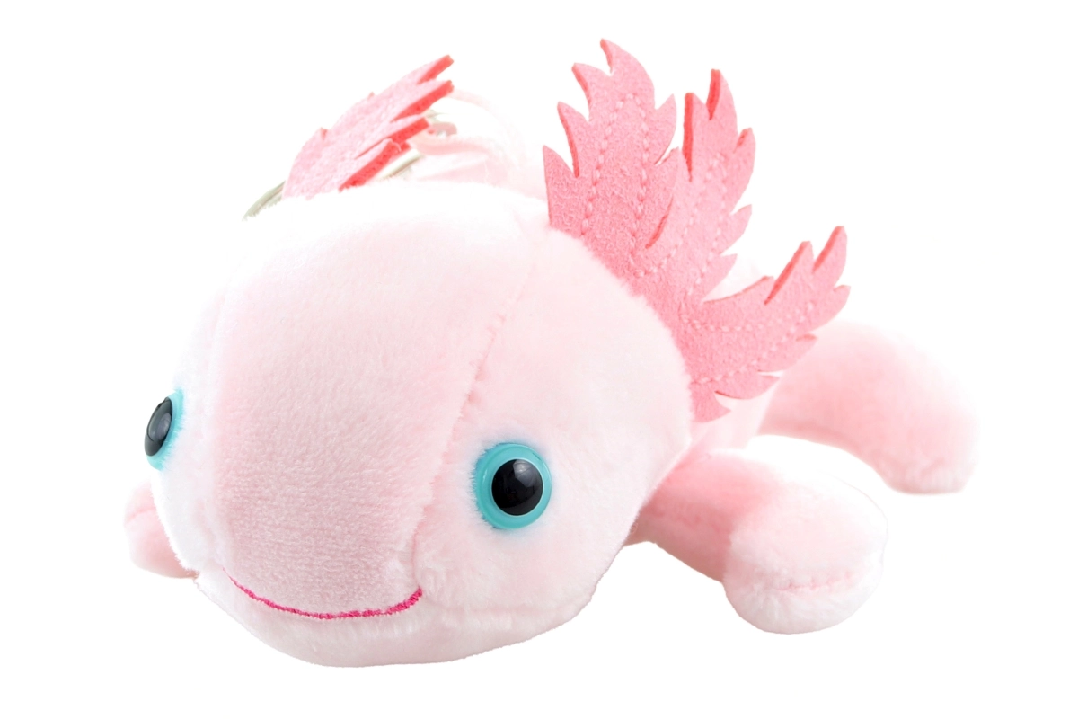The super-soft material, embroidered smile, and decorative gill frills make the axolotl an irresistible accessory.