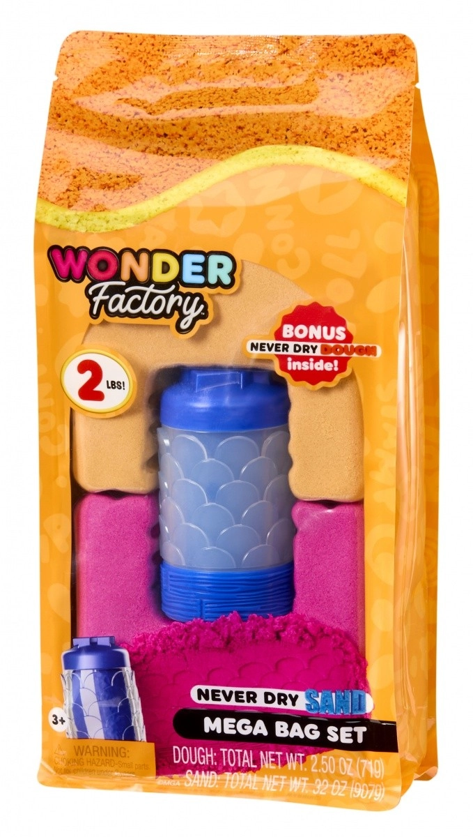 WONDER FACTORY Never Dry kinetic sand is a sensory material for kids that stays soft and supple. You can squeeze it, roll it, cut it, and shape it into detailed imprints and structures without it drying out. The rich orange‑red tones make play visually engaging and inspire creativity.