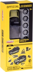 Build your own version of the legendary off-roader with this metal model of the LAND ROVER DEFENDER 110 in 1:43 scale. The package includes interchangeable parts (bumpers, wheels, roof rack, etc.), opening doors, and a tool for easy swapping. Great for creative play, skill development, and car lovers aged 3 and up.