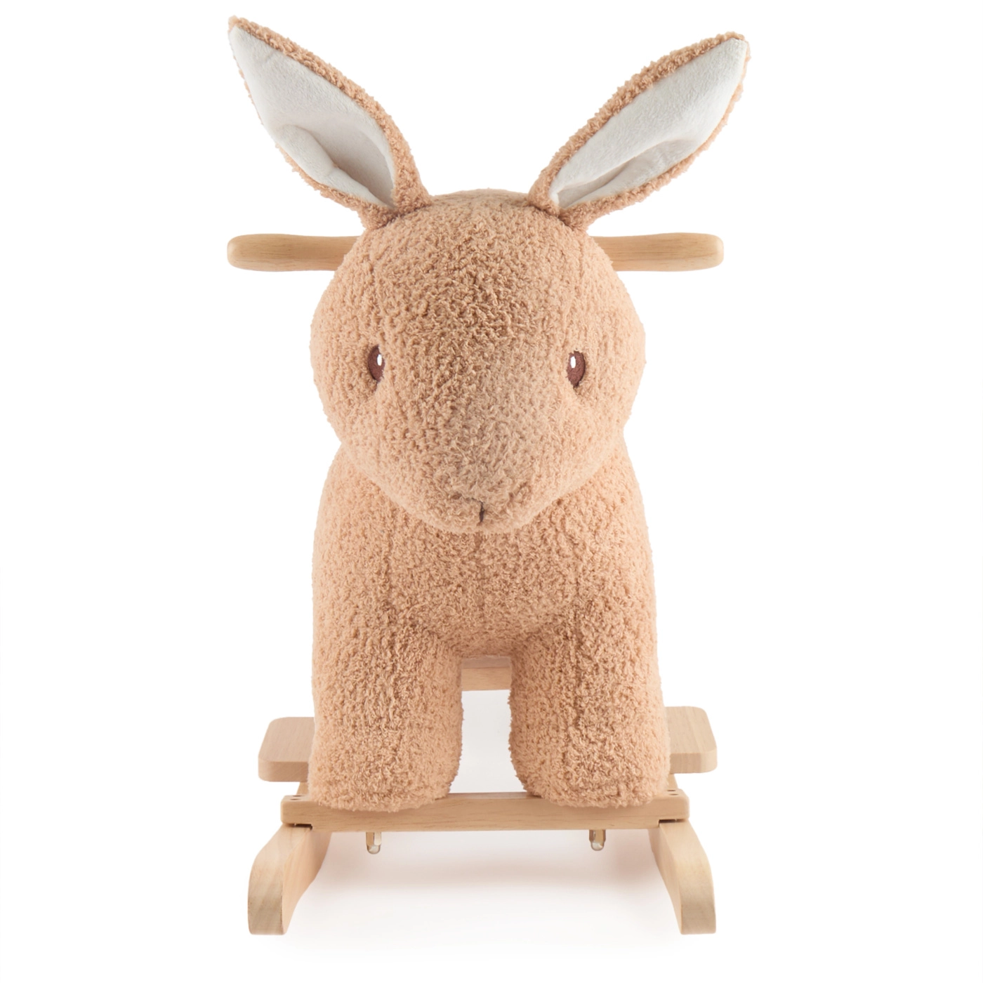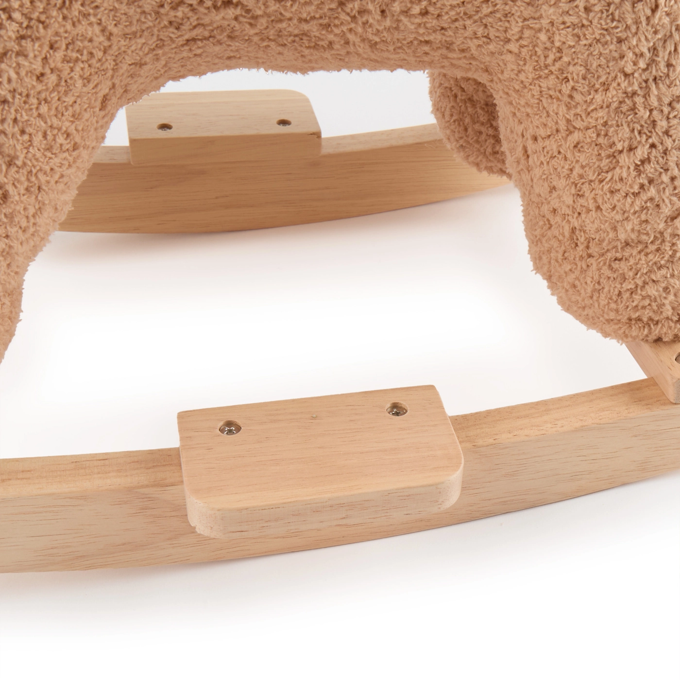 A durable wooden base with smoothly rounded runners and built-in anti-tip protection ensures safe, smooth rocking.