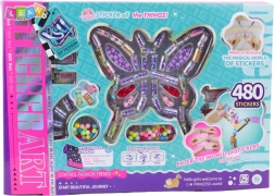 This creative set offers children hours of fun and skill development. With a large number of stickers and beads, they can create original decorations, bracelets, or necklaces and embellish their favorite items. The practical butterfly-shaped organizer keeps all pieces neatly in one place.
