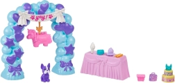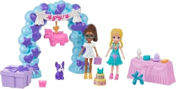 Throw an unforgettable celebration with the Polly Pocket playset! Two mini dolls, an adorable puppy, and lots of accessories create a magical birthday scene. There’s a balloon arch with a piñata, gifts, and a party table. Ideal for kids 4+, who love creative play and cute animals. Rich accessories, swappable outfit elements, and a party theme spark imagination for hours of fun.