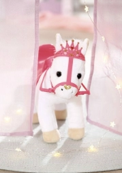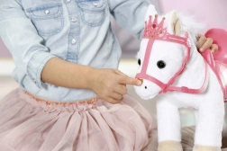 The BABY ANNABELL Little Sweet Pony is a super-soft friend that turns every playtime into a princess adventure. Thanks to the comfy saddle and elegant bridle with crown, the doll enjoys a safe ride and kids can create lots of gentle stories.