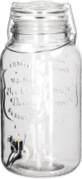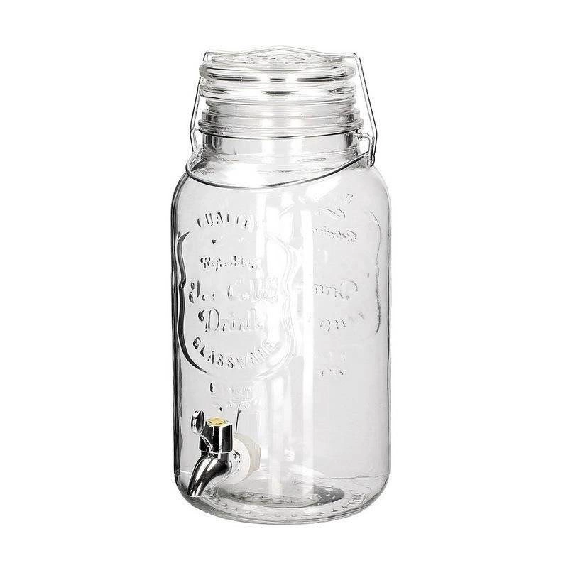 A stylish 4 l glass dispenser ideal for serving lemonade, water, juices, or punch. It features a practical tap, a wide filling opening for easy cleaning, an airtight lid with gasket and clip to keep insects out, and a decorative relief that looks great at garden parties and at home.