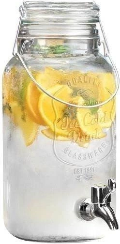 The tempered glass lid has a gasket and metal clip, so your drink stays protected from wasps and other insects. The dispenser is made from high-quality, thick glass with embossed decoration that adds flair to any table setting—at home, in the garden, or in food service.