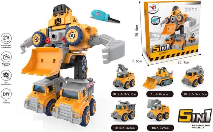Discover a versatile toy that combines fun with learning. The Robot 5-in-1 DIY set lets children assemble a robot and transform it into different vehicles. Simple connectors and a kid’s screwdriver support hand–eye coordination and technical skills.