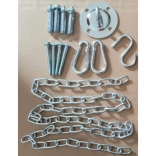 - 1× chain (1.5 m), 2× carabiner, 4× wood screw, 4× wall plug, 1× round ceiling hook, 1× S-hook